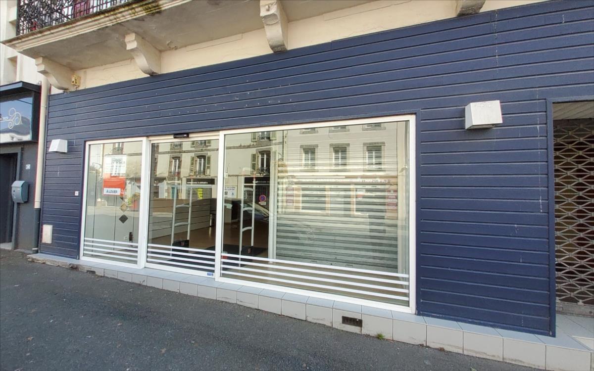 CARHAIX A LOUER Centre-ville beau local commercial d'une surface totale de 162 m² comprenant :Le local avec 2 vitrines (grilles électriques) arrière boutique, réserve, bureau et sanitaires.